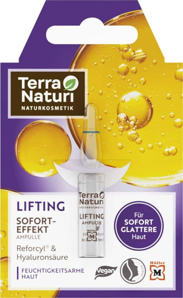 Terra Naturi steht für Naturkosmetik, die wirkt. Auch die LIFTING Sofort-Effekt Ampulle setzt auf die Kraft der Natur. Ausgewählte, hochwertige Inhaltsstoffe verwöhnen Ihre Haut und sorgen für ein optimales Ergebnis: